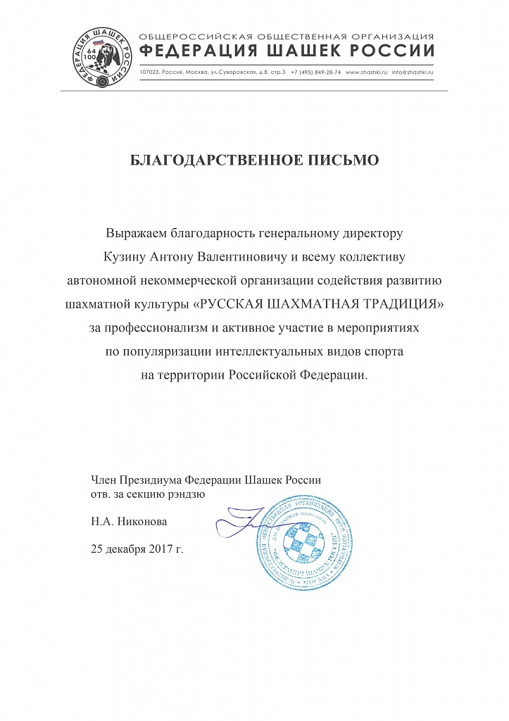 - популяризации и развития шахматного спорта и русской шахматной культуры на территории Российской Федерации и за ее пределами;