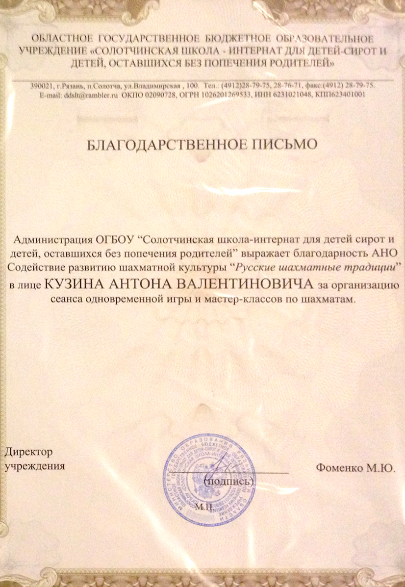 1.4. Наименование Организации на английском языке: Autonomous Nonprofit Organization "Russian chess tradition".