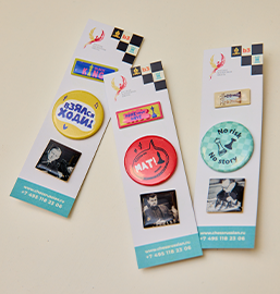 Наборы из значков с шахматной символикой. Значки выглядят оригинально и отличаются высокой прочностью. Они выполнены из пластика и оснащены металлическим креплением.