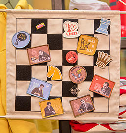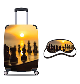 Чехлы для путешествий и маски с изображением шахматных фигур. В чехол можно положить одежду и полезные мелочи, если юный шахматист отправляется в лагерь или на турнир. Изделие выполнено из эластичного спандекса ― прочного материала, устойчивого к деформациям. Для удобства перемещения предусмотрены колеса и ручка. Маска изготовлена из шелка. Ее можно использовать во время сна в поезде или самолете.